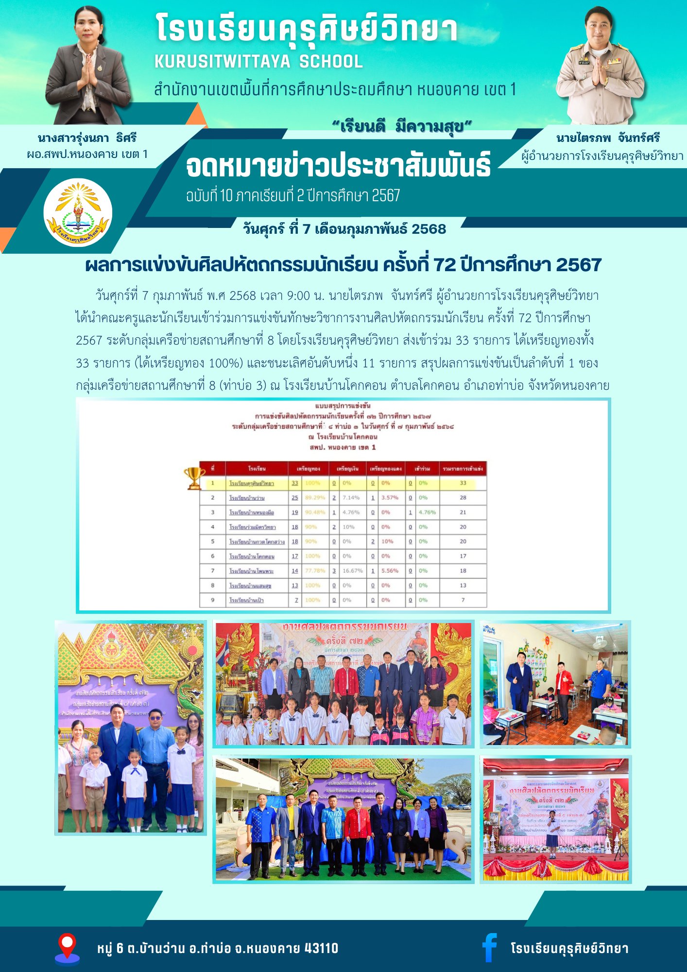 ผลการแข่งขันศิลปหัตกรรมนักเรียน ครั้งที่ 72 ปีการศึกษา 2567